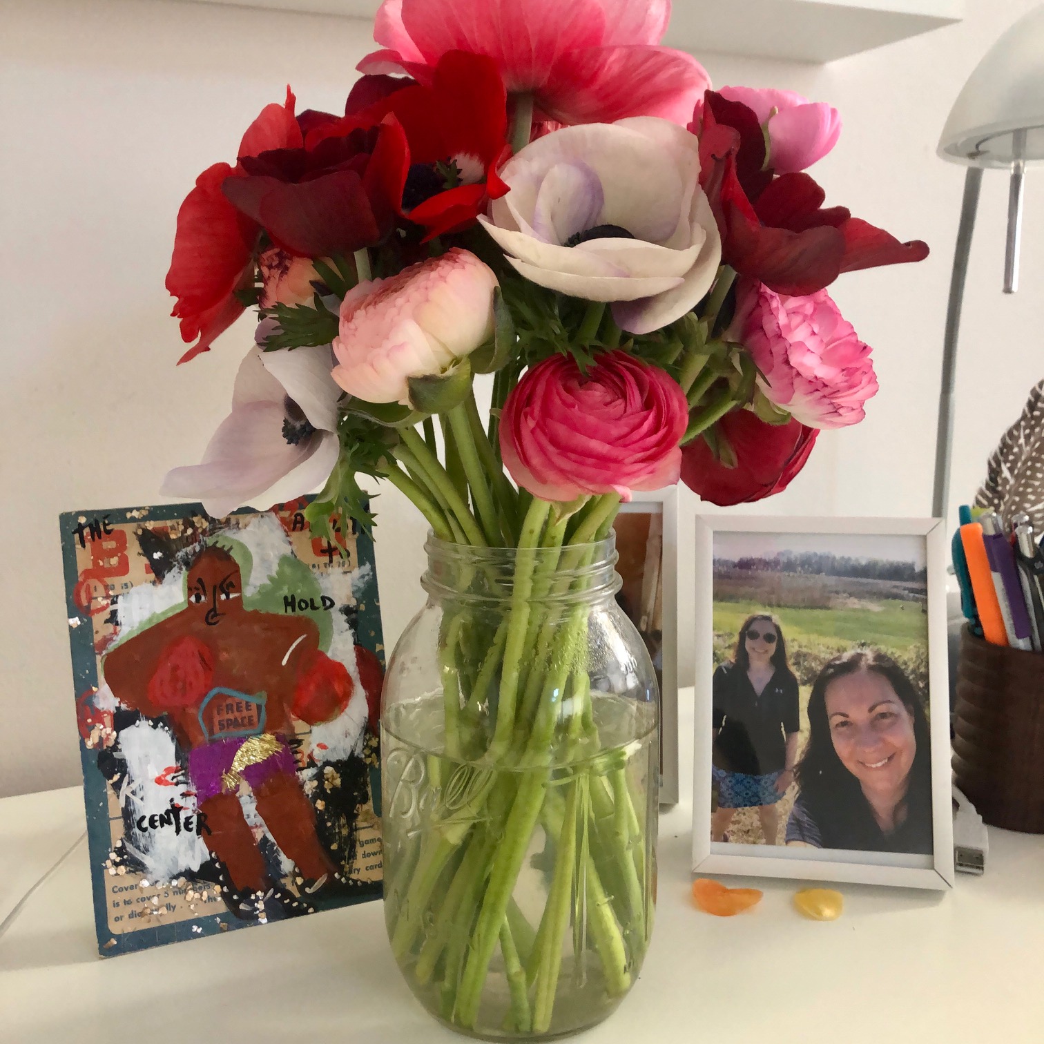 Dear Life, I am happy be home with these beautiful flowers placed between photo of my daughter and sister and painting by Richard Kurtz. First round of treatment is almost done. Receive an injection at the Cancer Center this morning then I have ten day reprieve for my body to restore before going back into hospital for second round. Thank you all for the support. You keep me moving forward with love.
