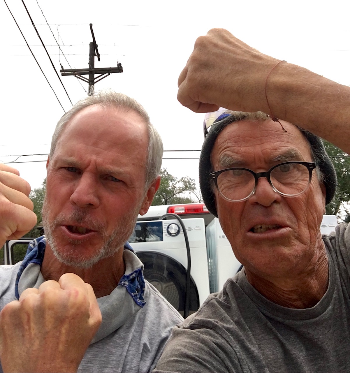 Dear Life, Ask and you shall receive! I needed a washer/dryer for my new home and a dear friend who is also moving said, “I have an extra set. They’re yours. A gift”. Thank you. Then I needed to have the W/D moved. These two friends, my Angel Muscle Men, did the job and sent me this selfie making me laugh out loud. I feel loved and cared for by my community. I’ve been in bed for several days giving my body the deep rest it needs for recovery.