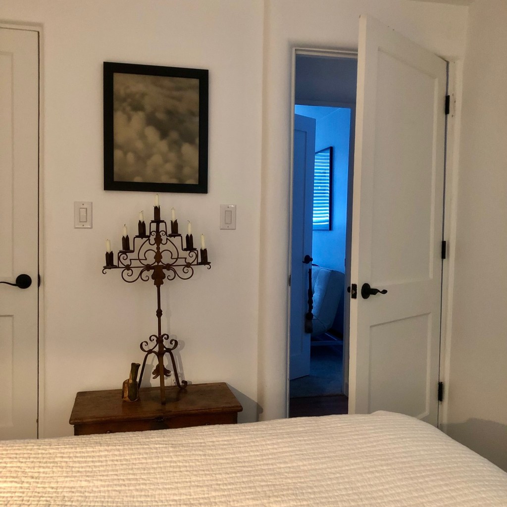 Dear Life, Today, a friend will come to the house and set up her sewing machine on my art table to hem and back drapes for the studio windows; northwest exposure. Those of you who live in the SW high desert know we have real winters. I’m preparing. I’ve walked into the bedroom door once during the night. Learning to live with doors! The loft had only a front and bathroom door (BD always left open).