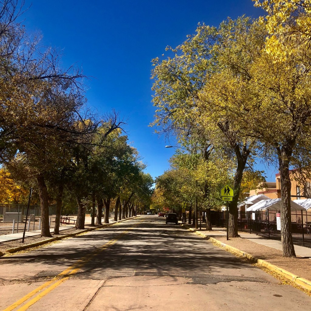 Dear Life, I walk out my door and see this: tree-lined residential neighborhood and a school park. Also a church and dirt lanes with small houses nestled amongst properties with trees and gardens. It’s lovely and safe. The New Mexico state capital building, fondly called “The Round House”, because it’s round, sits at the end of my street. I see it, too. My prayers for wise leadership will drop into the halls expediently. My state of mind this morning is gratitude. Thank you Higher Power for landing me here.