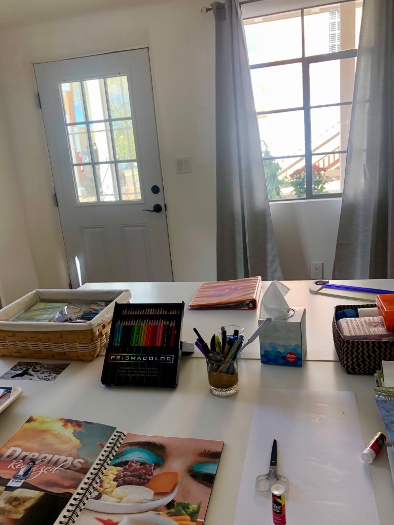 Dear Life, These are two studio tables set up squarely in middle of front room. Nice light, space to move around and do table projects. I’ve been collaging. Projects are percolating. It’s wonderful to be living in a central downtown location. Robert Stivers, friend and photographer, stopped by with a roasted chicken. We sat at the kitchen table for an hour discussing new studios, art, and life. There is a long tradition of artists hanging out together in studios and at kitchen tables. Long live the eat-in kitchen and home art studio. Long Live Me!