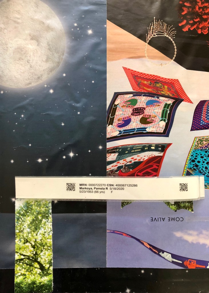 Dear Life, I feel like a space creature from the moon after two weeks of essentially living in bed. Healing the head cold/virus is slow going due to compromised immune system. However, looking at this collage, I see on May 18, 2020, I was in the hospital, so I’m grateful for my strange existence in my home “bubble” rather than in the hospital. There’s a little bit of uptick in energy and a glimmer of hope that my body is turning a corner. Hopefully, I will return to earth-living in the very near future. Happy Full Moon, Friends