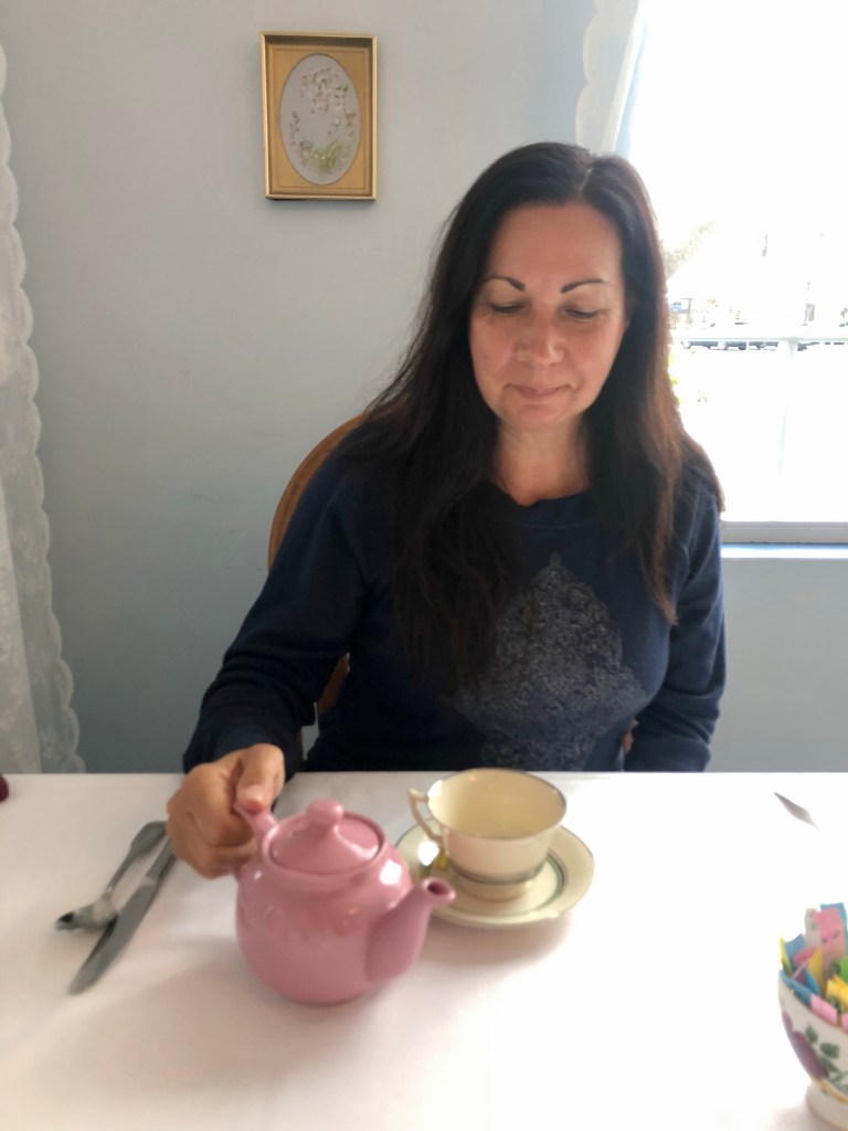Dear Life, This is my beautiful sister, Arlene. After we visited our mother Rosie, Arlene took me to a unique restaurant in Oxford CT, Tracy and Tea. They offer a hundred kinds of teas, baked goods and delicious food. Of course, I want to take my daughter Tracy. Making new loving memories with family fills my life with love.