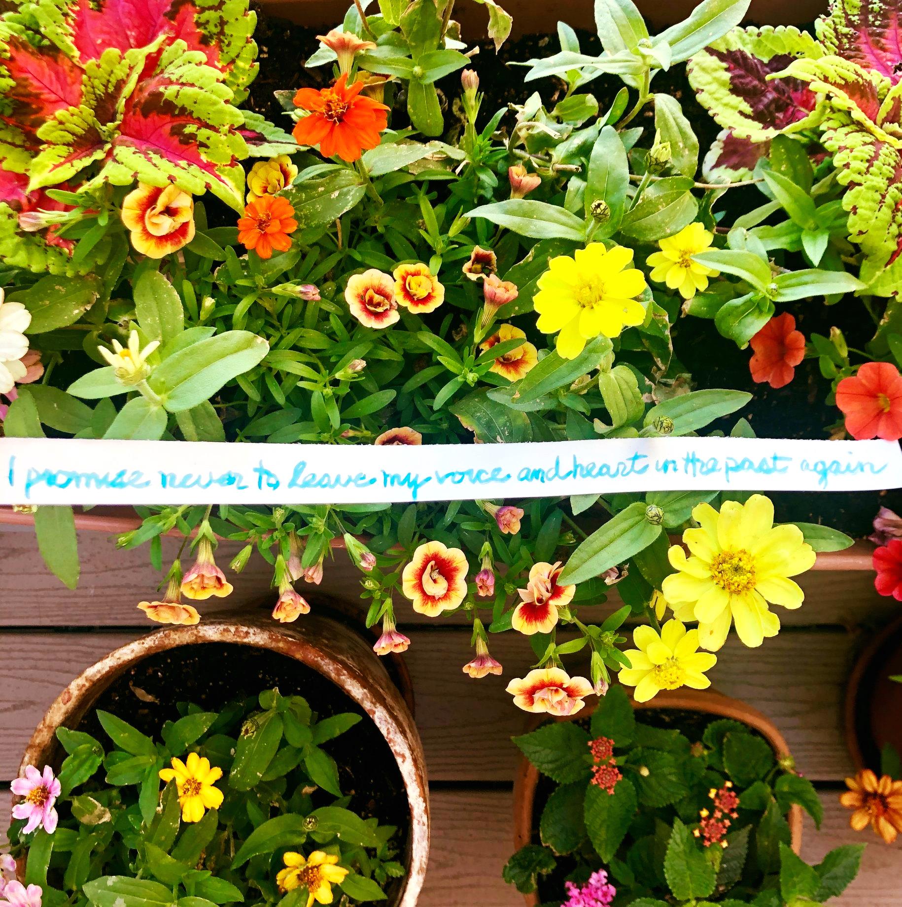 Dear Life, “I promise never to leave my voice and heart in the past again”. This “promise” was painted five years ago. I am going through my storage bins, remembering the past is necessary for self-awareness. Letting go is essential for moving forward. Found some treasures that now have a place in my home. Other things, as beautiful as they are, can be a gifted treasure for someone else. I am blossoming.