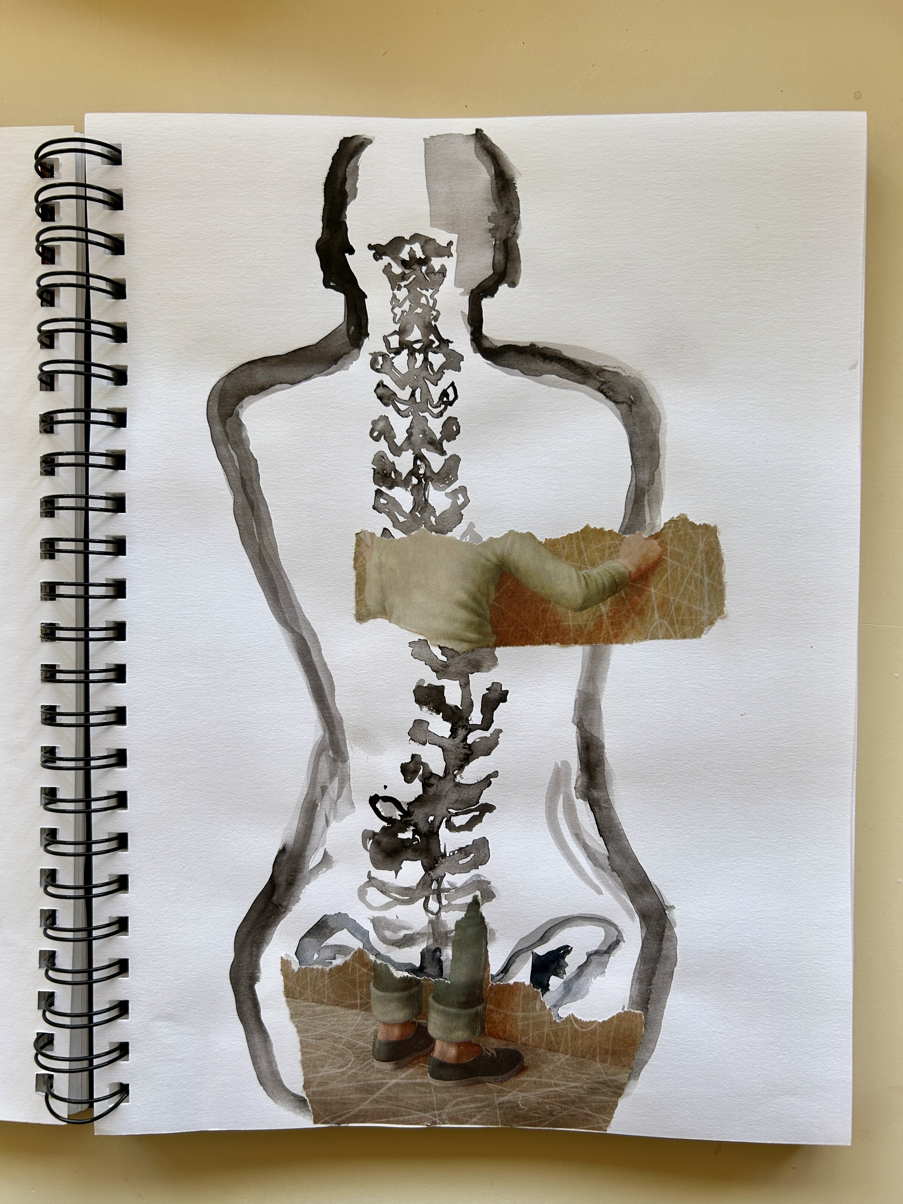 Ink Drawing, Collage and Painting “Spine” 9.21.2025