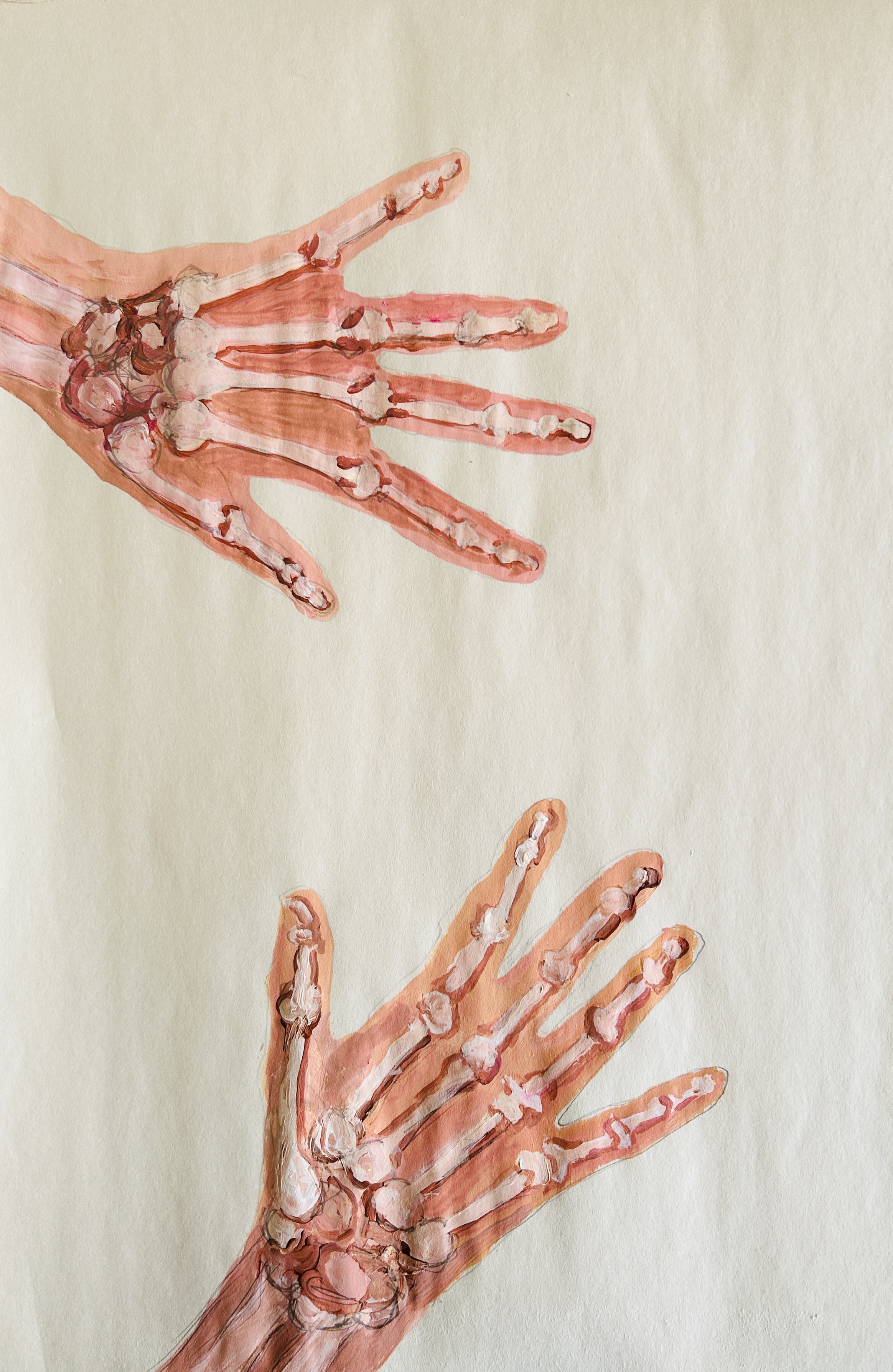 Dear Life, My hands are so important in my life. Chemo affected my fingertips, dulling them a little. I am conscious of this when I try to pick up something small, thank you tweezers; or when I need to turn a cap on a tube of paint, thank you pliers. Otherwise my hands are nimble, capable, sensitive, incredible vehicles for creative practices and acts of kindness, touching a friend’s shoulder. Inside out, hand’s on what is mine to do, hand’s off what is not.